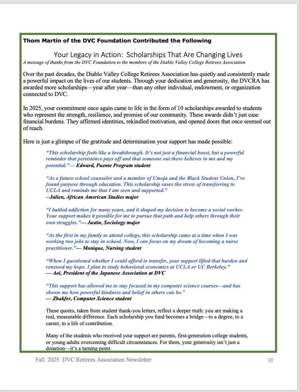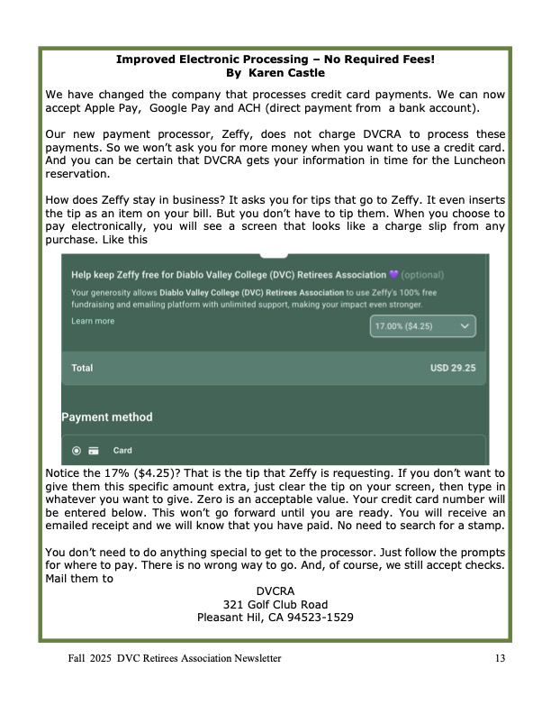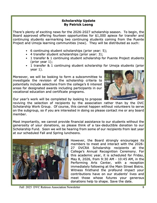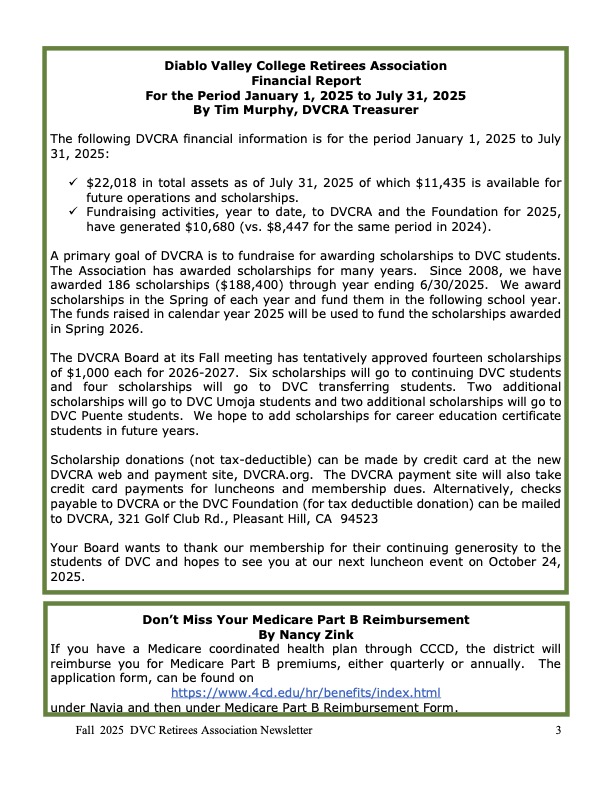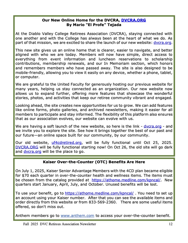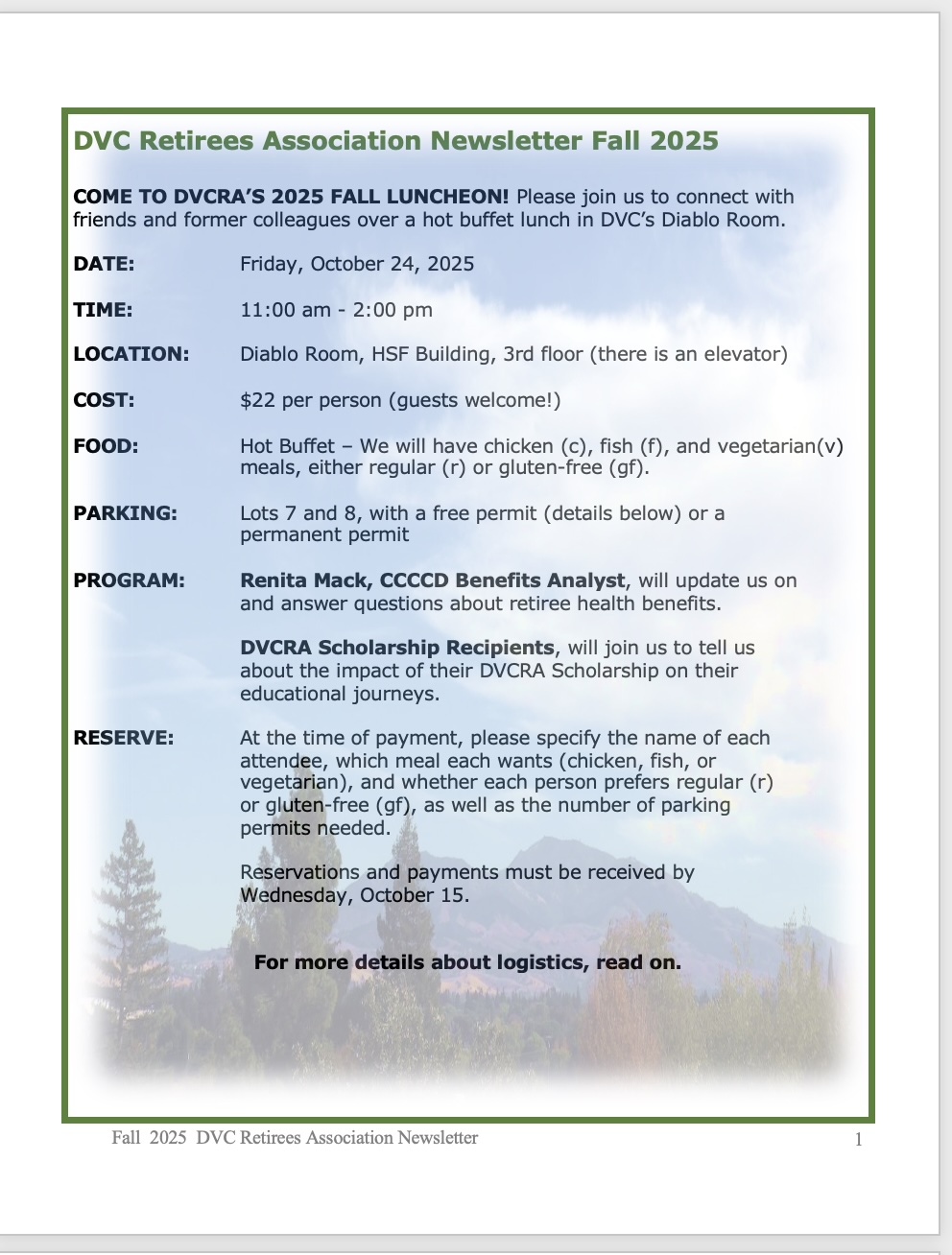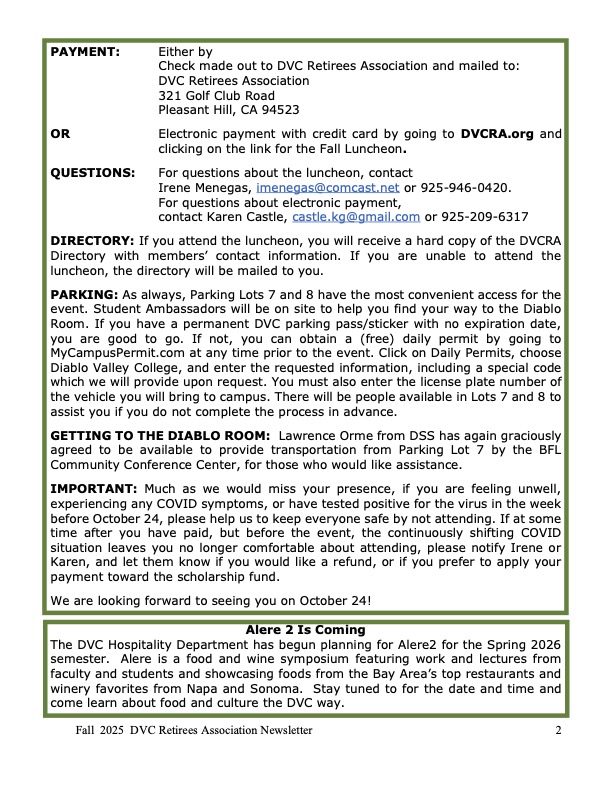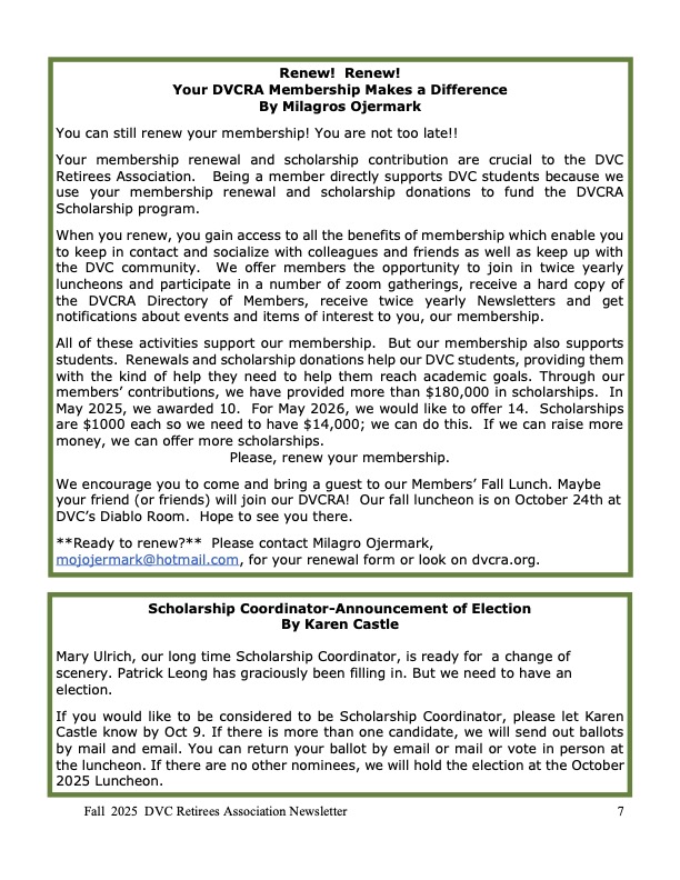 Fall 2025 DVCRA Newsletter Fall 2025 DVCRA Newsletter 9.22 This is the PDF version if you would like to see it or download x